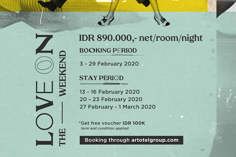 Program Love on the Weekend ini berisikan penawaran paket menginap dengan membagikan ART Voucher. Sesuai dengan namanya, setiap tamu yang memilih paket ini dapat menginap di long weekend dan berhak mendapatkan berbagai fasilitas tambahan di dalamnya. Program menginap ini dapat dirasakan di semua properti milik ARTOTEL Group. Untuk menjadi bagian dari program ini, Anda harus memesan kamar melalui situs resmi ARTOTEL Group di www.artotelgroup.com.