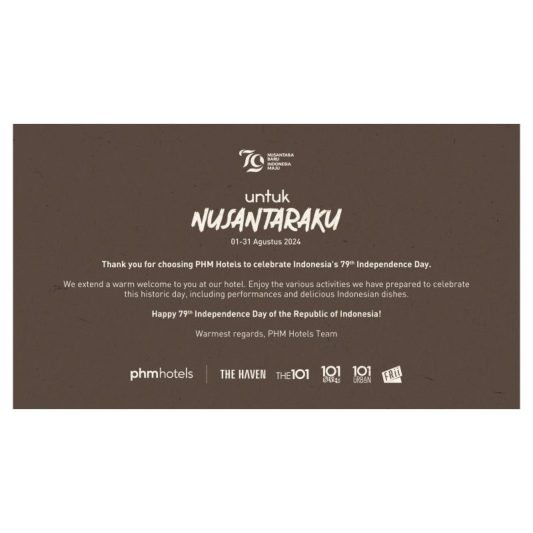 “Dengan berbagai kegiatan dan sajian khas Indonesia ini, diharapkan Untuk Nusantaraku menjadi perayaan yang dinantikan oleh para tamu, memberikan pengalaman yang berkesan, serta meningkatkan rasa cinta dan kebanggaan terhadap Indonesia,” jelas Greta Indri, Corporate Marketing Communications Manager PHM HOTELS.