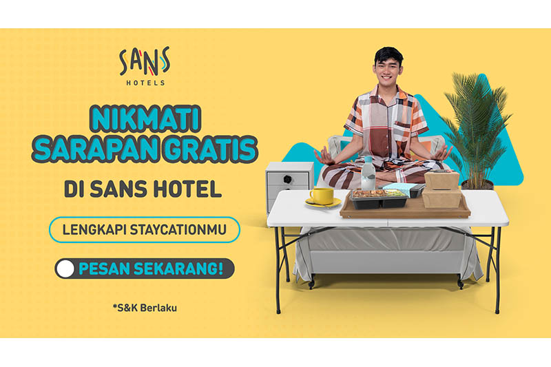 RedDoorz melalui properti Sans Hotel kembali menghadirkan tawaran menarik bagi para pelanggannya. Kali ini, Sans Hotel, menawarkan paket staycation dengan gratis sarapan setiap harinya.