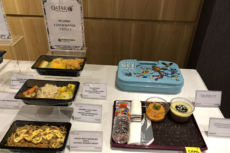 Setiap hidangan anak di Qatar Airways dikemas ke dalam sebuah kotak dengan warna dan gambar yang menarik. Hidangan ini berisikan pilihan jus, camilan, dan buah yang sehat. Tidak hanya makanan, di dalam kotak tersebut juga dilengkapi dengan hadiah menarik berupa mainan yang membuat para penumpang cilik bergembira.