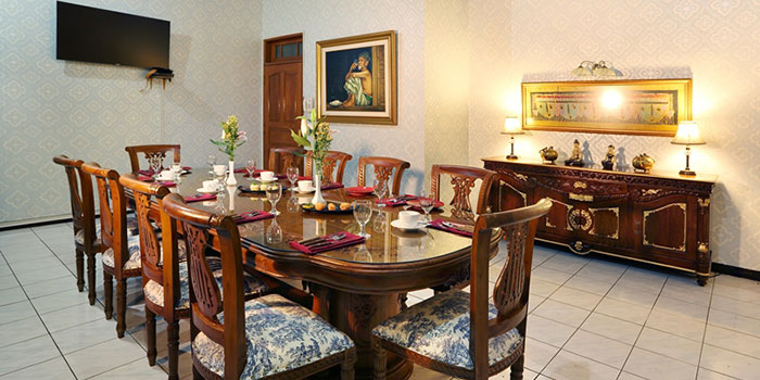 Selain tempat bersantap, Patheya Restaurant & Function Room juga memiliki tiga ruang meeting, yakni Ruang Kenangan dengan kapasitas 12 orang, Ruang Soka dengan kapasitas enam orang, dan Ruang VIP dengan kapasitas 30 orang. Ruang Kenangan dan Soka berada di lantai dua. Kedua ruang ini menawarkan pemandangan apik kolam renang dan Joglo. Sementara itu, Ruang VIP berada di lantai satu. Setiap pertemuan ini mengusung desain interior Eropa klasik yang dilengkapi fasilitas pendingin udara dan TV LED 55 inci.