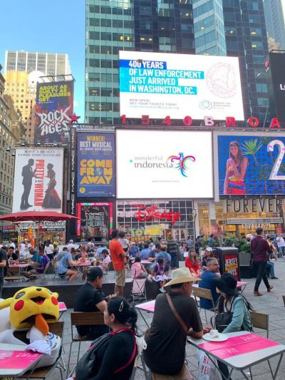 Wonderful Indonesia juga hadir melalui LED Billboard dan bus di New York. Durasi branding sekitar 3 pekan, 7-28 Juli 2019.